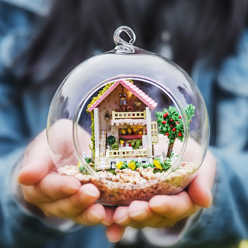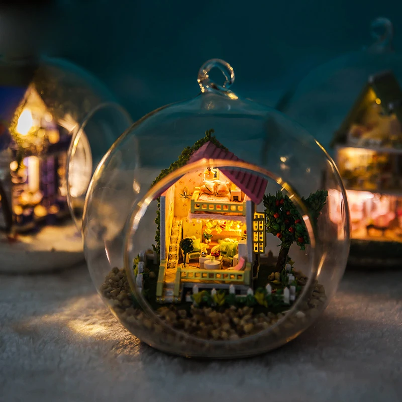 Diy Glassball Dollhouse Miniature Scene Wooden Puzzle Toy Creative Funny Building Dollhouse Kits wi
