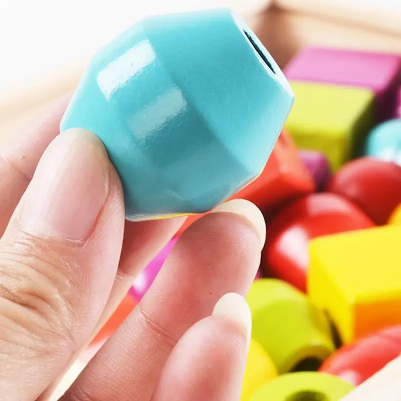 Wooden Children Puzzle Shape Cognitive Hand-eye Coordination Beaded Toy Rope Wearing Stringing Buil