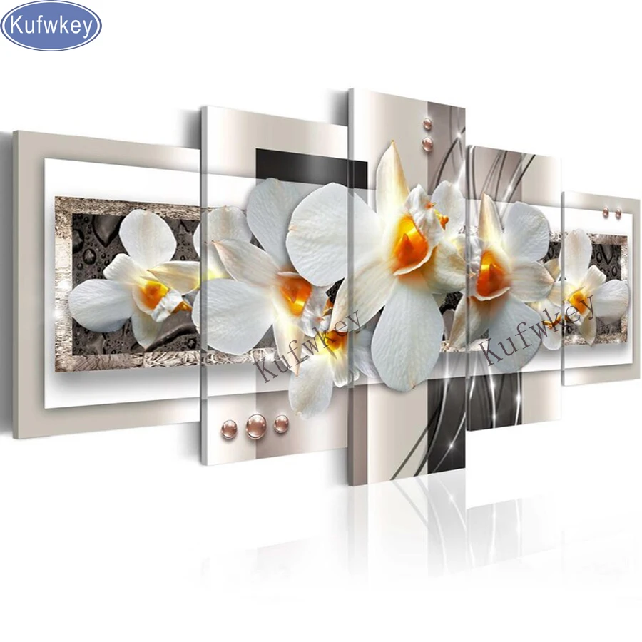 REVIEW TOP SELLER 5pcs/set 5D diy Diamond Paintingorchid Stitch CrossFullDiamond Embroidery orchidDiamond Mosaicdiamo